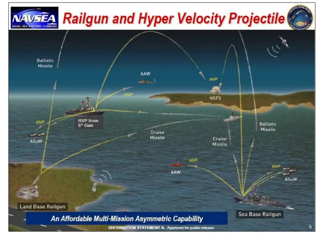 Versions of the dart-shaped precision-guided BAE HVP round have been test-fired from Navy five-inch naval deck guns and 155mm howitzers in the past. The HVP developed for use in the railgun was also a kinetic projectile designed to destroy targets through the sheer force impact after reaching a reported peak speed of 5,600 miles per hour, but the other types were expected to have high-explosive warheads. The Navy previously said that the HVP would have a maximum range of around 17 or 40 nautical miles when fired from a towed 155mm M777 howitzer or five-inch Mk 45 gun respectively.