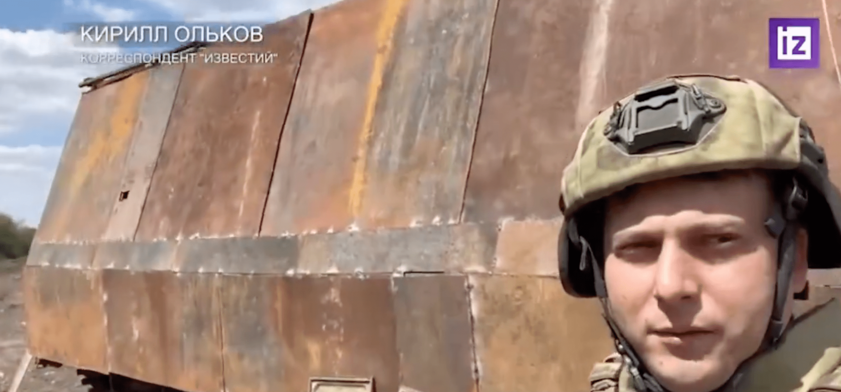 The narrator states that the T-62’s original 115mm main gun was “beyond repair, but the chassis was in good condition. The turret was cut off and steel sheets were welded on. Now this combat vehicle can be used to transport infantry.”