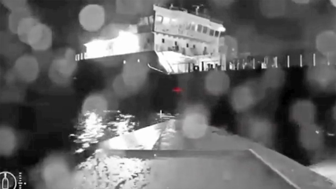 An tanker ship has been struck by a explosive-laden Ukrainian drone boat near the mouth of the Kerch Strait.