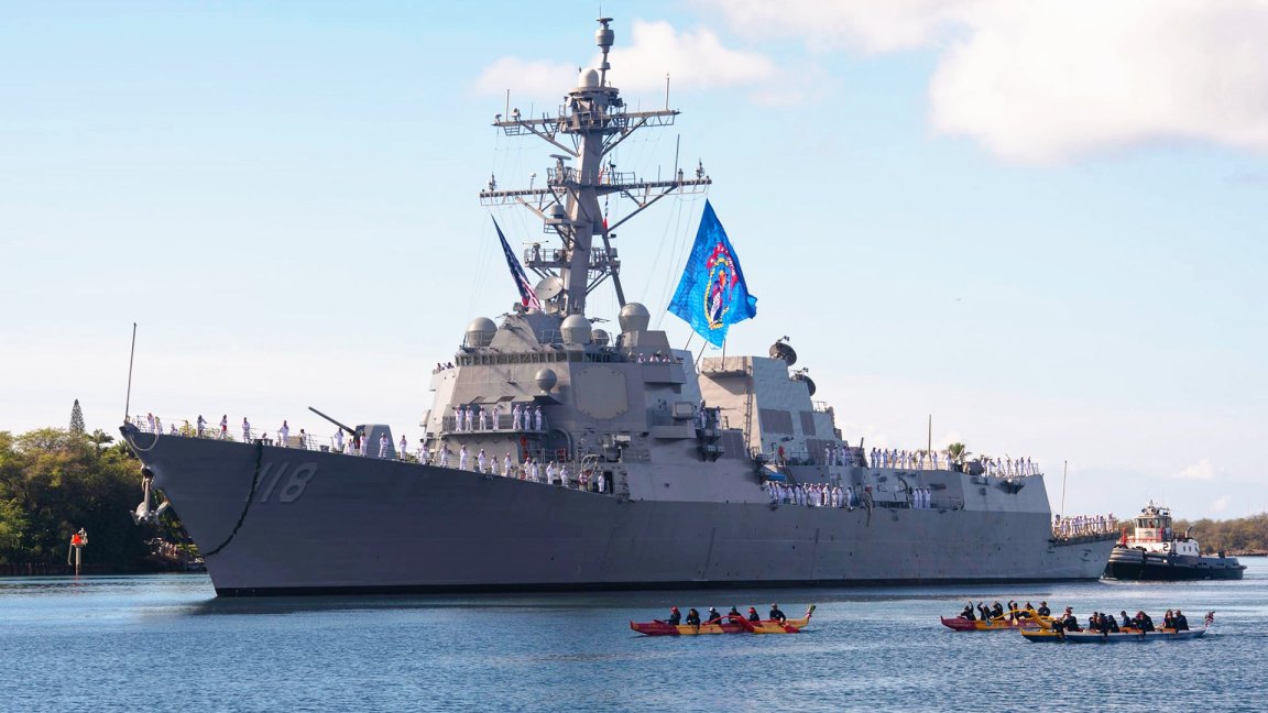 Navy’s Newest Destroyer Was Just Commissioned Flying A Giant “Go For Broke” Flag