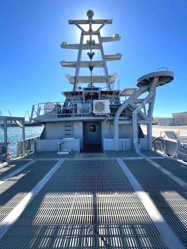 Nomad also has a large open rear deck, which has been used in the past to accommodate various containerized mission spaces and other equipment. Offshore support vessels like this are typically used to help move personnel and cargo to and from oil and gas platforms, and to perform similar logistics functions in intercoastal areas.