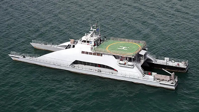 When it comes to the actual capabilities of the Iranian force shadowing the U.S. warships on August 17, the largest ship in the contingent by far was the roughly 787-feet (240-meter) long Shahid Mahdavi, which the IRGC-N only took delivery of in March. The ship was converted from an Iranian state-owned and operated container ship known as the Sarvin, which had been previously sanctioned by the United States. It reportedly has a top speed of 18 knots and can sail up to 18,000 nautical miles without needing to refuel.