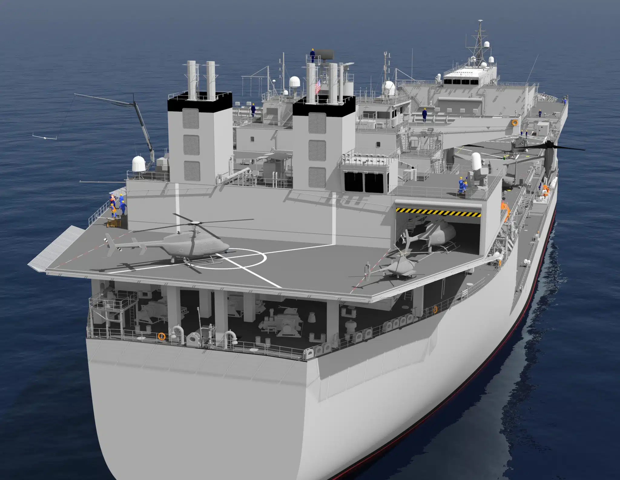 Special Operations Forces (SOF) and Airborne Mine Counter Measures (AMCM) are among the primary missions that these ships are optimized to support. The entire class is based on the giant Alaska-class oil tanker, a commercial design, which NASSCO believes will be a key factor in facilitating these potential upgrades to best meet the Navy’s needs. These ships have tremendous volume, deck area, and room for growth, and are remarkably inexpensive compared to ‘keel-up’ warship designs. Each one costs very roughly a similar sum as a single Littoral Combat Ship, or around $500 million.