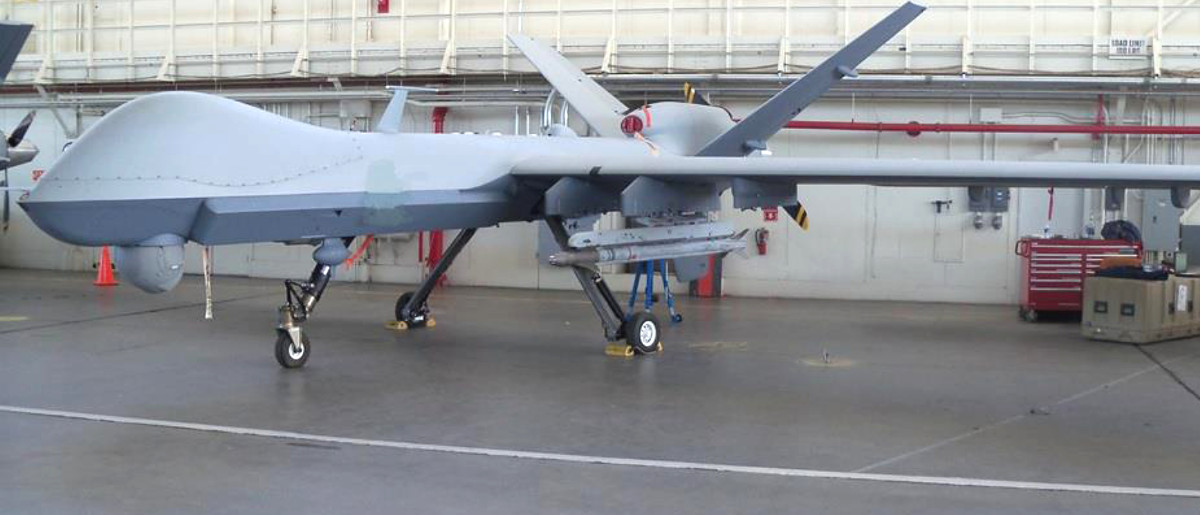 The newest version of the MQ-9 is powered by the Rolls-Royce M250 turboshaft engine. It has a high-resolution electro-optical/infrared (EO/IR) nose-mounted MTS-B sensor and can also carry an Eagle Eye long-range synthetic aperture radar with moving-target indicator capability, signals intelligence, and communications relay packages, as well as a whole slew of other capabilities via bolt-on pods. Air-to-ground weapons range from JDAMs to Hellfire missiles to laser-guided bombs.