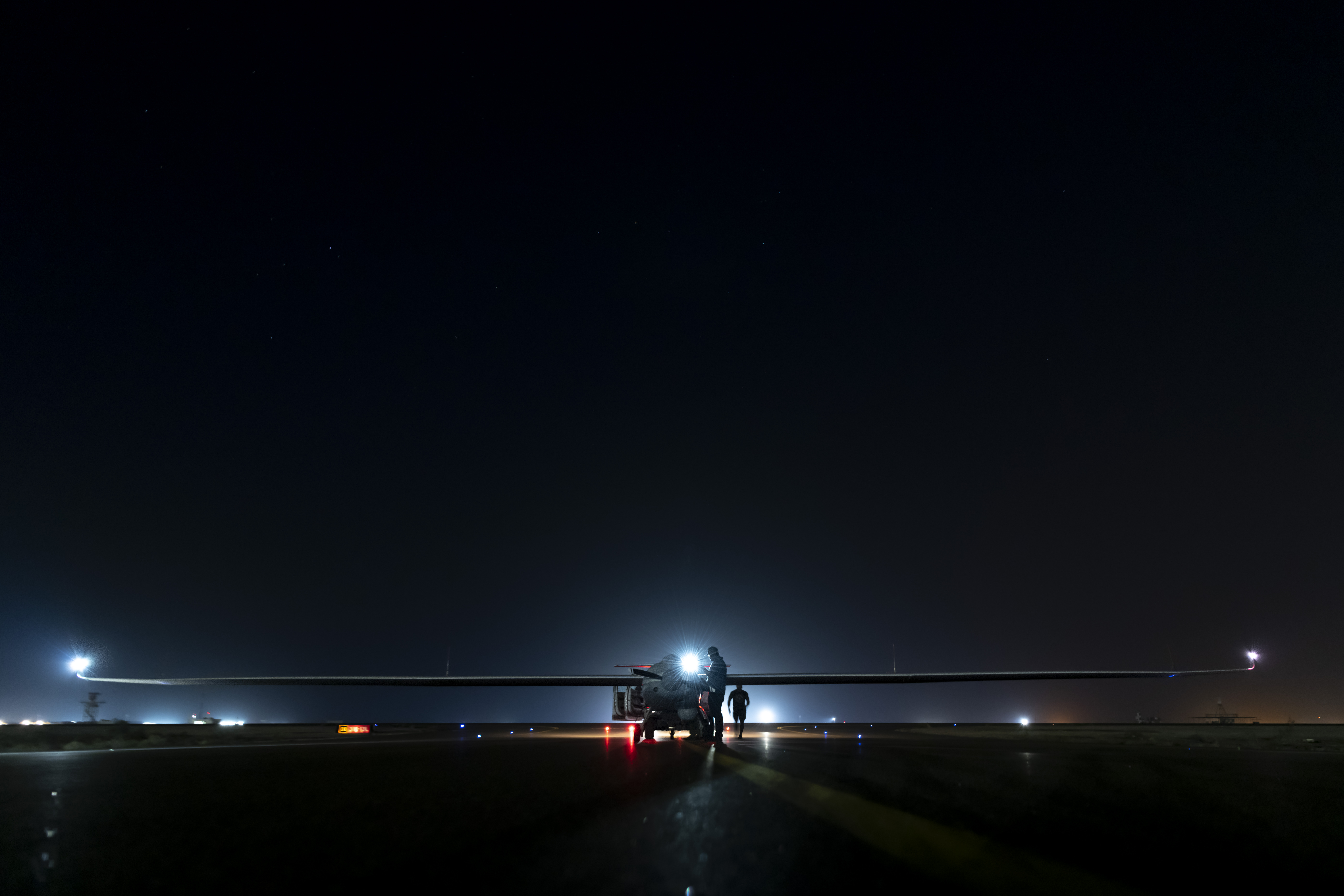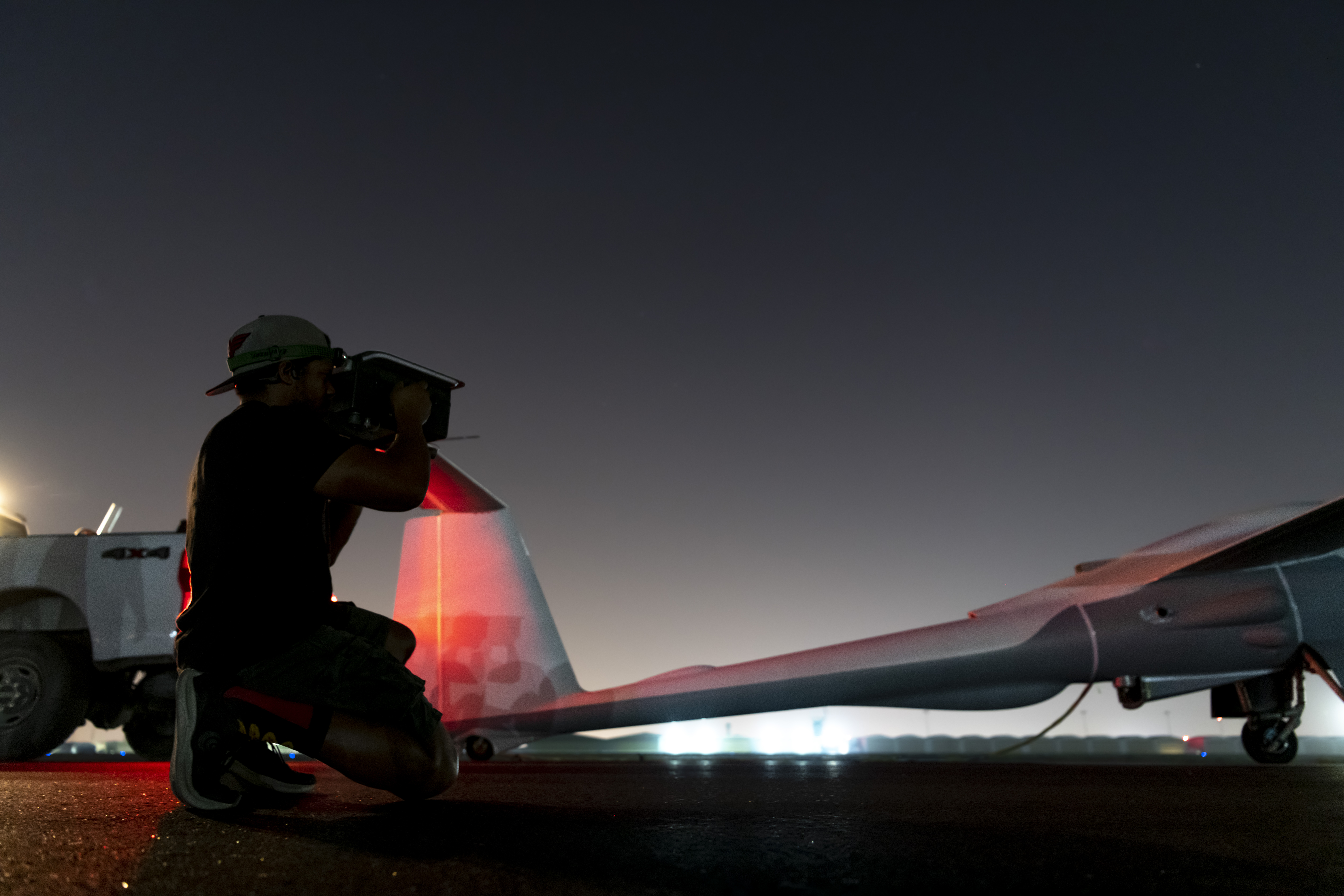 The Air Force has published a series of photos showing crew chiefs preparing an ULTRA drone for an early-morning mission on May 7 at what it describes as “an undisclosed location within Central Command area of responsibility.” That location can be identified as Al Dhafra — a key Air Force hub in the region, and home of the 380th Air Expeditionary Wing — thanks to the hangar in the background of some of the photos. This building was previously used to house RQ-4 Global Hawk ISR drones.
