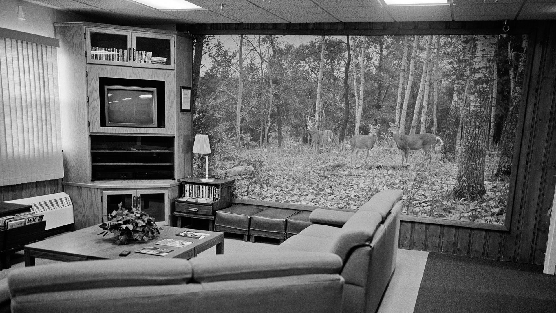 PHILLIPS, SOUTH DAKOTA – AUGUST 26: (EDITORS NOTE: Image has been shot in black and white. Color version not available.) An underground former nuclear missile launch control facility officer’s quarters displays a mural of deer on August 26, 2011 in South Dakota. Located in the rural farmland of the South Dakota plains, the bunker is now a national historical site open to visitors. Put out of service after treaties with the former Soviet Union, the missiles controlled by this room were probably capable of destroying the planet. (Photo by Andrew Lichtenstein/Corbis via Getty Images)