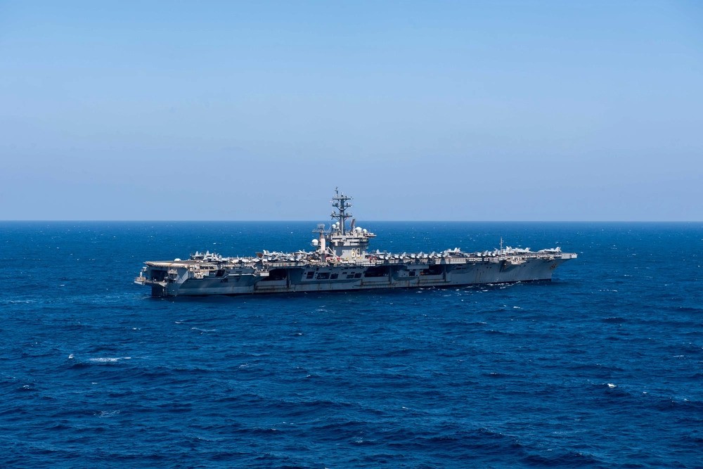 The aircraft carrier USS Dwight D. Eisenhower (CVN 69) sails in the Gulf of Aden, Dec.18, 2023. The Dwight D. Eisenhower Carrier Strike Group is deployed to the U.S. 5th Fleet area of operations to support maritime security and stability in the Middle East region. (U.S. Navy photo by Mass Communication Specialist 3rd Class Nicholas Rodriguez) The aircraft carrier USS Dwight D. Eisenhower sails in the Gulf of Aden, Dec.18, 2023. (U.S. Navy photo by Mass Communication Specialist 3rd Class Nicholas Rodriguez)