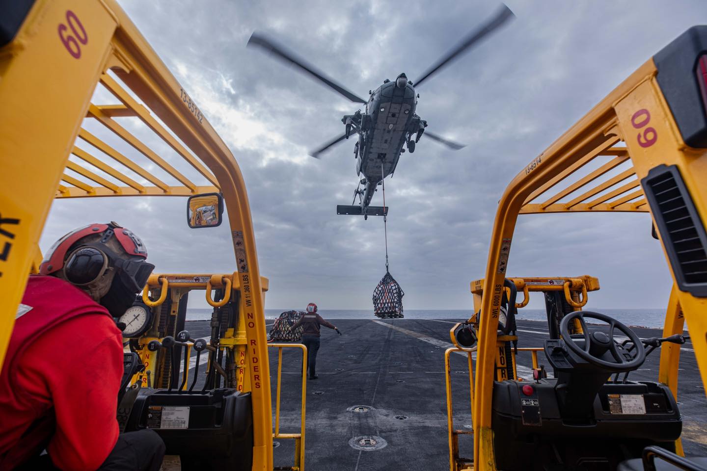 Supplies being flown aboard the Dwight D. Eisenhower. (Dwight D. Eisenhower Facebook page)