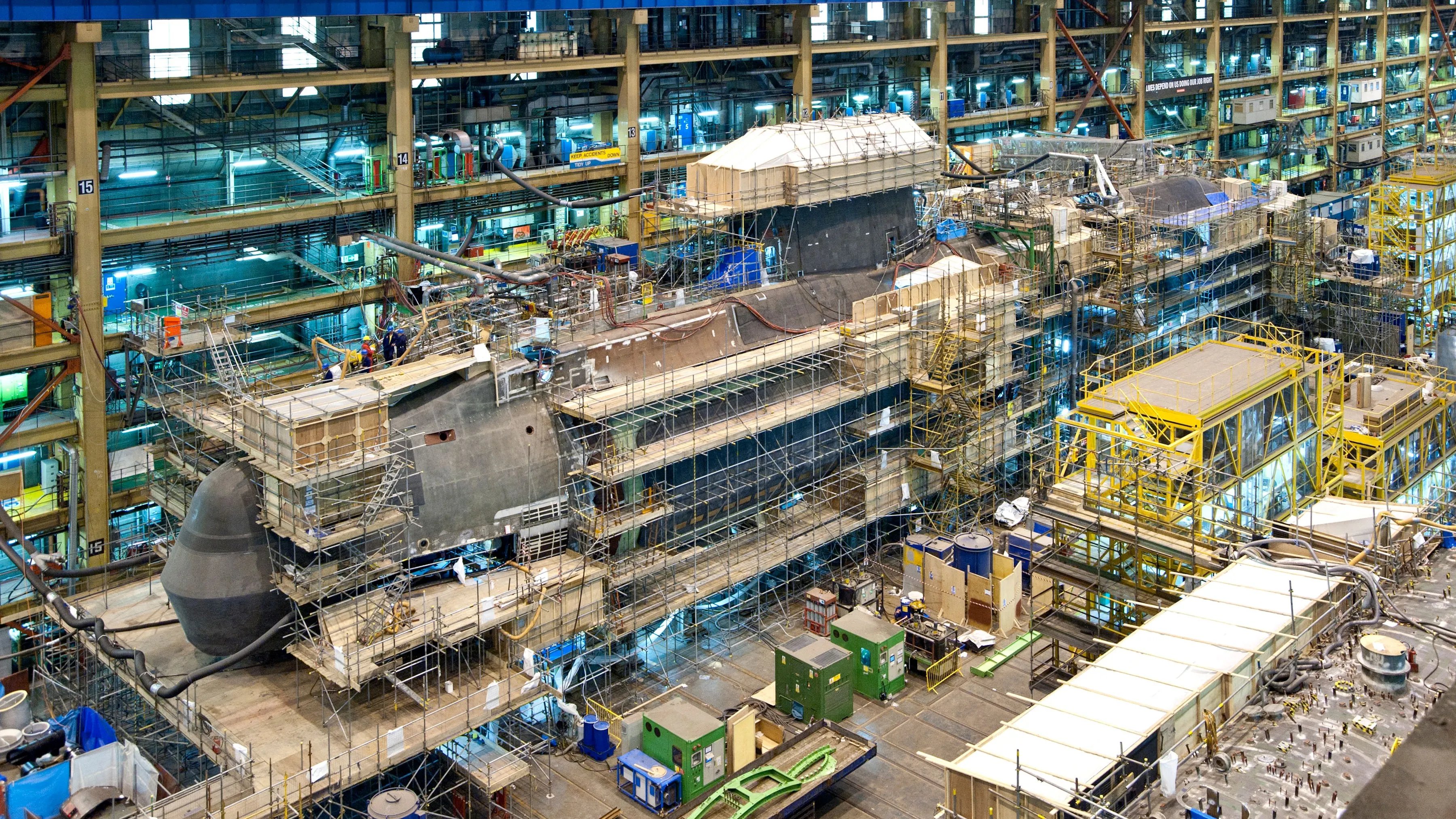 Built in the first half of the 1980s, the building provides a fully protected working environment for nuclear submarine construction, without the need for slipways, and it also keeps sensitive construction activities hidden from intelligence-gathering satellites.