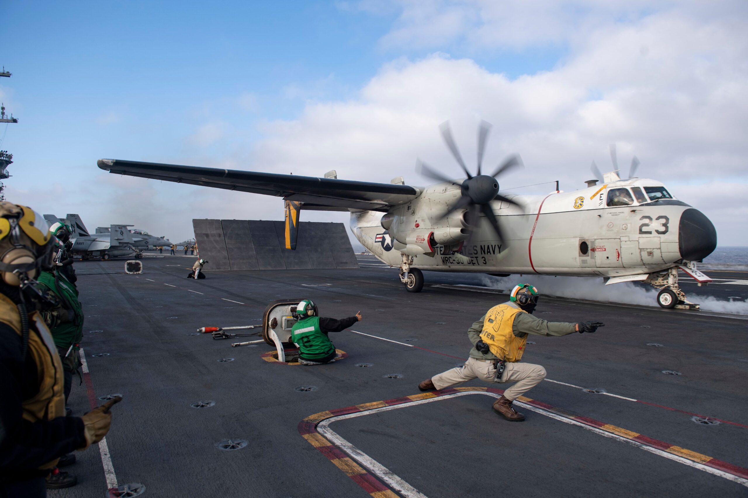 The Carl Vinson and the Theodore Roosevelt strike groups are now using them for COD, Navy CMDR Beth Teach told The War Zone. Though the Navy is planning to phase out the aging Greyhounds, a twin-engine, propeller-driven airframe that first entered service in the mid-1960s, these changes won’t have any effect on the carrier groups’ ability to carry out their missions, Teach said. You can read more about what it is like to fly one in our interview with a former pilot here.