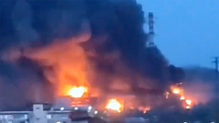 It was discovered after Ukrainian forces noticed airframes and equipment at the site, according to the Ukrainian Scout Telegram channel, which first posted the video seen below. It shows an explosion on the roof, a ball of flames erupting followed by a large plume of black smoke.
