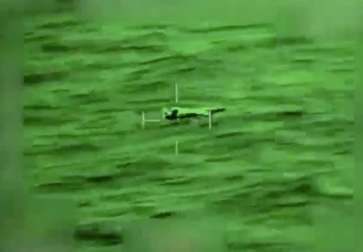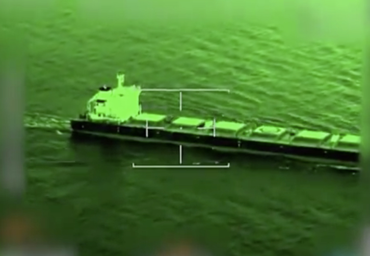 The footage was captured through the helicopter’s electro-optical/infrared (EO/IR) sensors. In the opening frames, we see an unspecified commercial ship in view.
