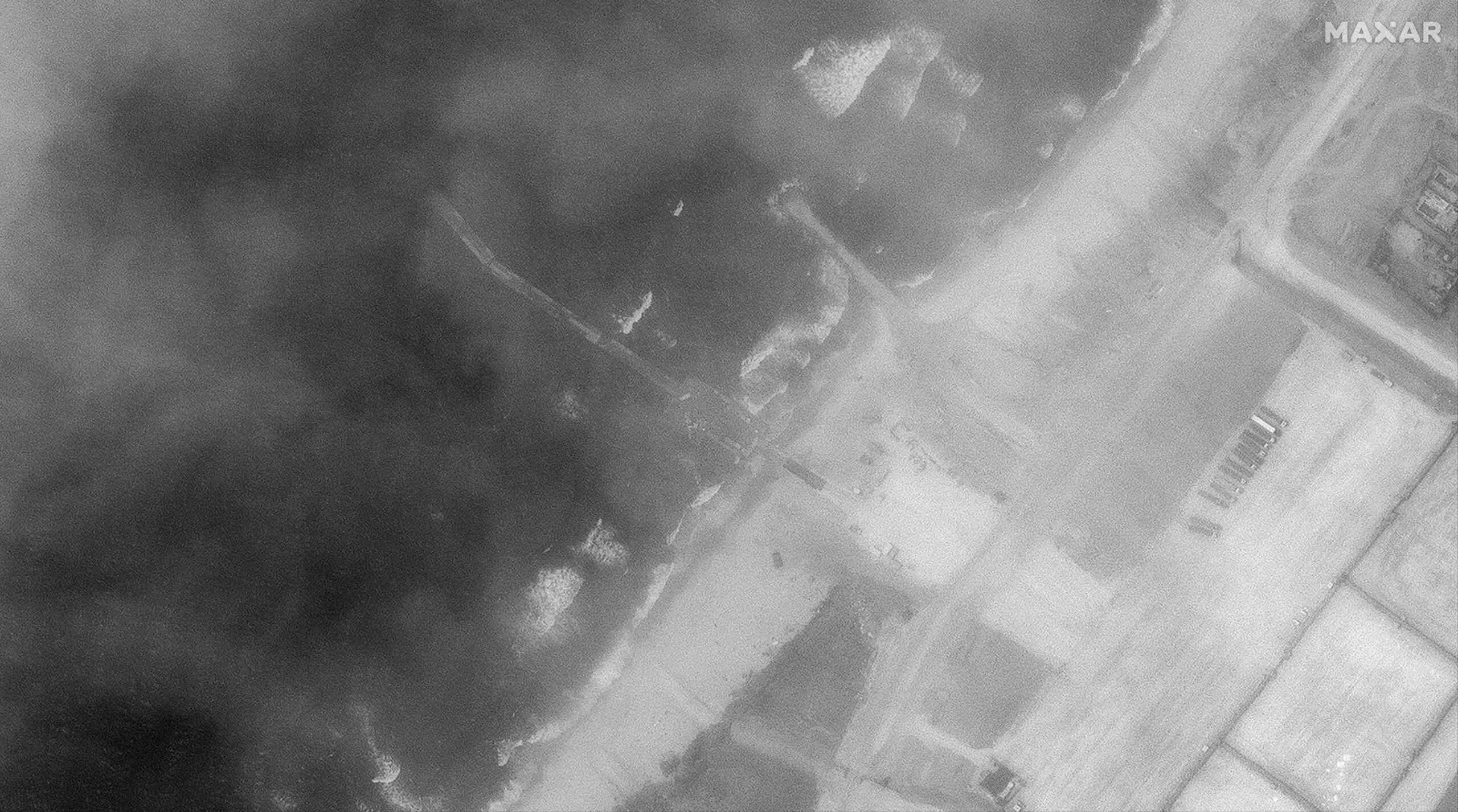The missing section of the pier was still in place as of May 26, according to Maxar imagery.