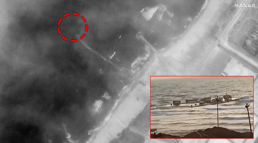 Additionally, a short video posted to YouTube by an Israeli soldier on Monday purports to show part of the pier floating semi-submerged off the coast.