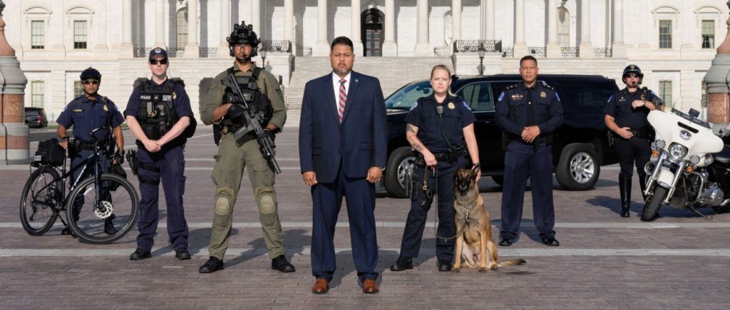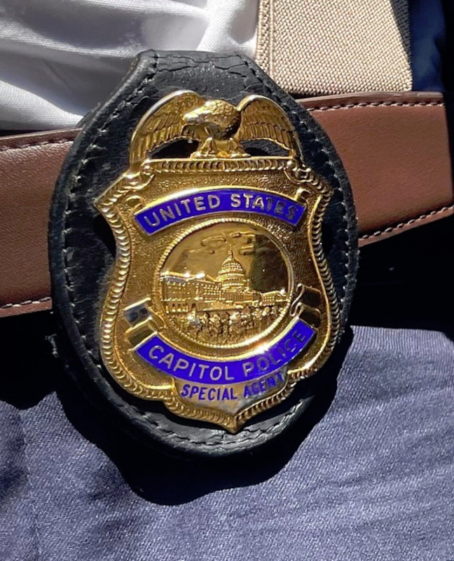 FBI has also been put forward based on the badge the individual has on their belt. It features an eagle on top with wings that are not fully connected with the rest of the badge, as is the case with what the FBI issues to special agents. The FBI is also not known to be a user of the MP7, though this does not rule out the possibility. At the same time, members of the U.S. Capitol Police have been seen wearing badges with eagles with similarly detached wings over the years, as well.