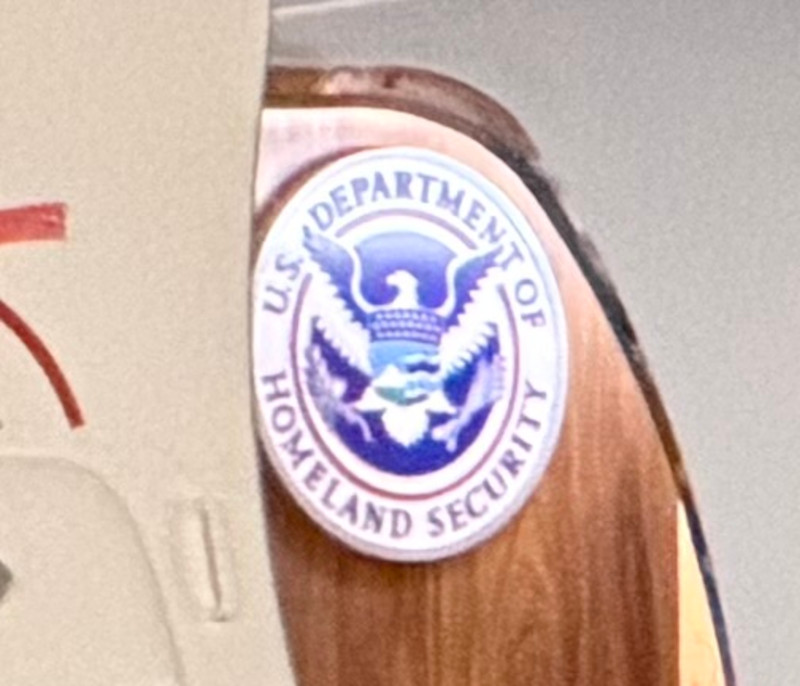 As noted already, a relatively large DHS seal fitted to a bulkhead inside the cabin is visible through an open door in one picture. The jet’s exact internal configuration at present is unknown, something we will come back to later on.