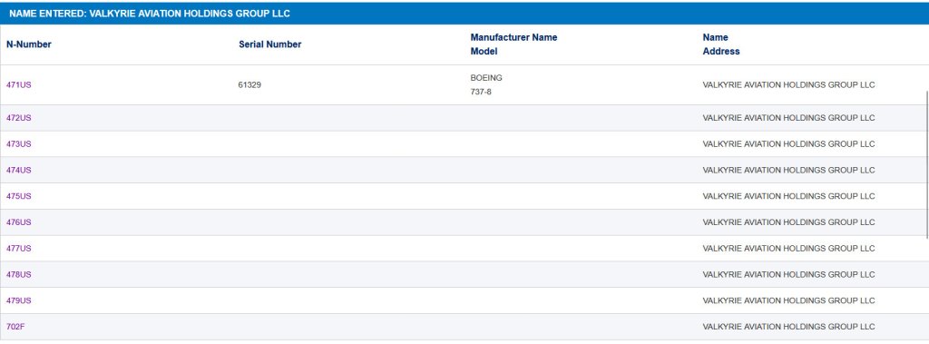 What connection Daedalus Aviation may or may not have to Valkyrie Aviation is unknown, but the latter company did reserve seven other N numbers (N473US, N474US, N475US, N476US, N477US, N478US, and N479US) on October 27, according to the FAA’s database. A search of entries tied to Valkyrie in the database also turns up N472US, a Gulfstream G650 business jet, which is now said to be registered to a company called Vigilant Aviation Holdings LLC with an address in Lewes, Delaware. Valkyrie also interestingly reserved N702F, the registration number previously applied to N471US, on November 13.
