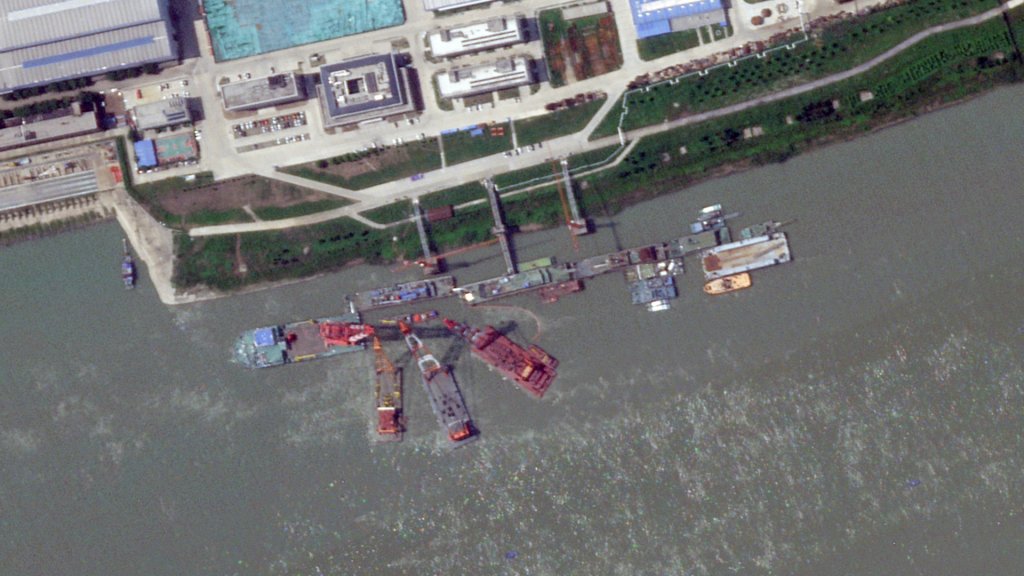 Satellite imagery shows unusual activity last month, including the sudden appearance of four crane barges, at a shipyard in China that builds submarines and other naval vessels, which might potentially be a sign of an accident of some kind.