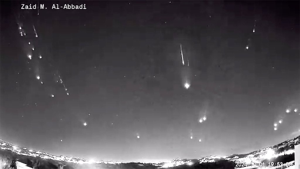It is very challenging to get a firm estimate of how many missiles were seen flying to their targets and how many intercepts occurred, but the numbers are very large on both sides, with dozens of intercepts seen in the video.