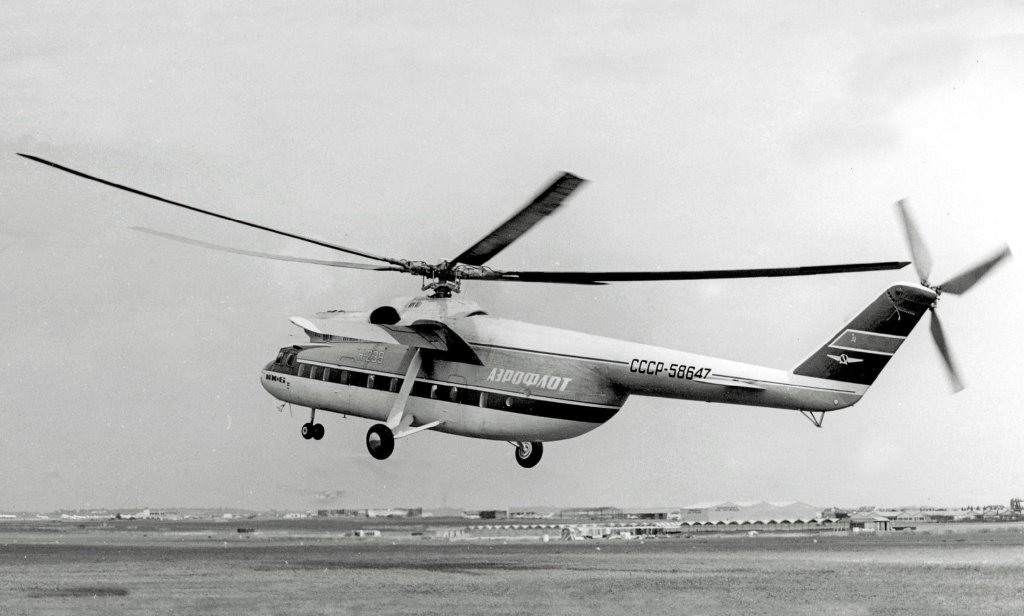 The idea of developing the already mammoth Mi-6 into a passenger-carrying helicopter was pushed by Aeroflot Soviet Airlines in 1965. However, Aeroflot had already shown significant interest in the Mi-6 — military testing of which began in the late-1950s — by this point.
