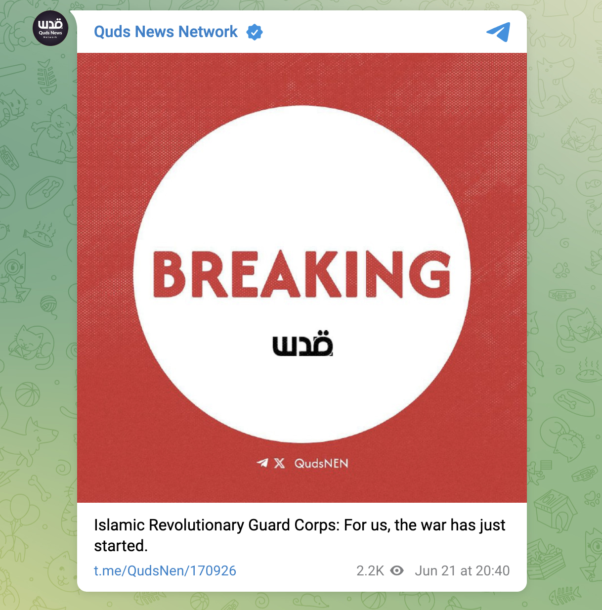 🔹 Following today’s US aggression against the Fordow, Natanz, and Isfahan nuclear facilities, Iran’s mission to the United Nations wrote to the Security Council requesting an emergency meeting.