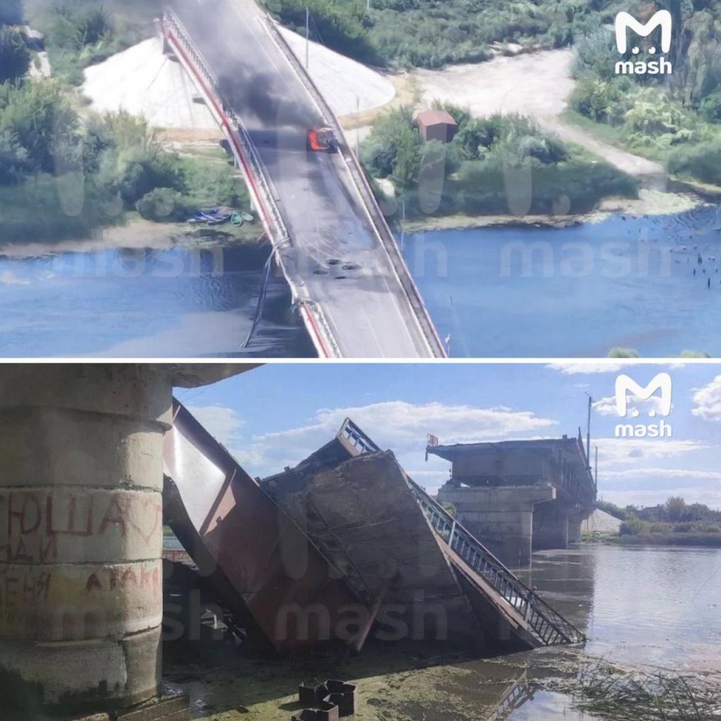 Earlier, Russian media and milbloggers claimed the bridge was struck by two volleys of HIMARS rockets. They showed a section of the bridge near the town of Glushkov damaged with a burning vehicle on it and then fully collapsed into the water. It is located about seven miles north of the border.