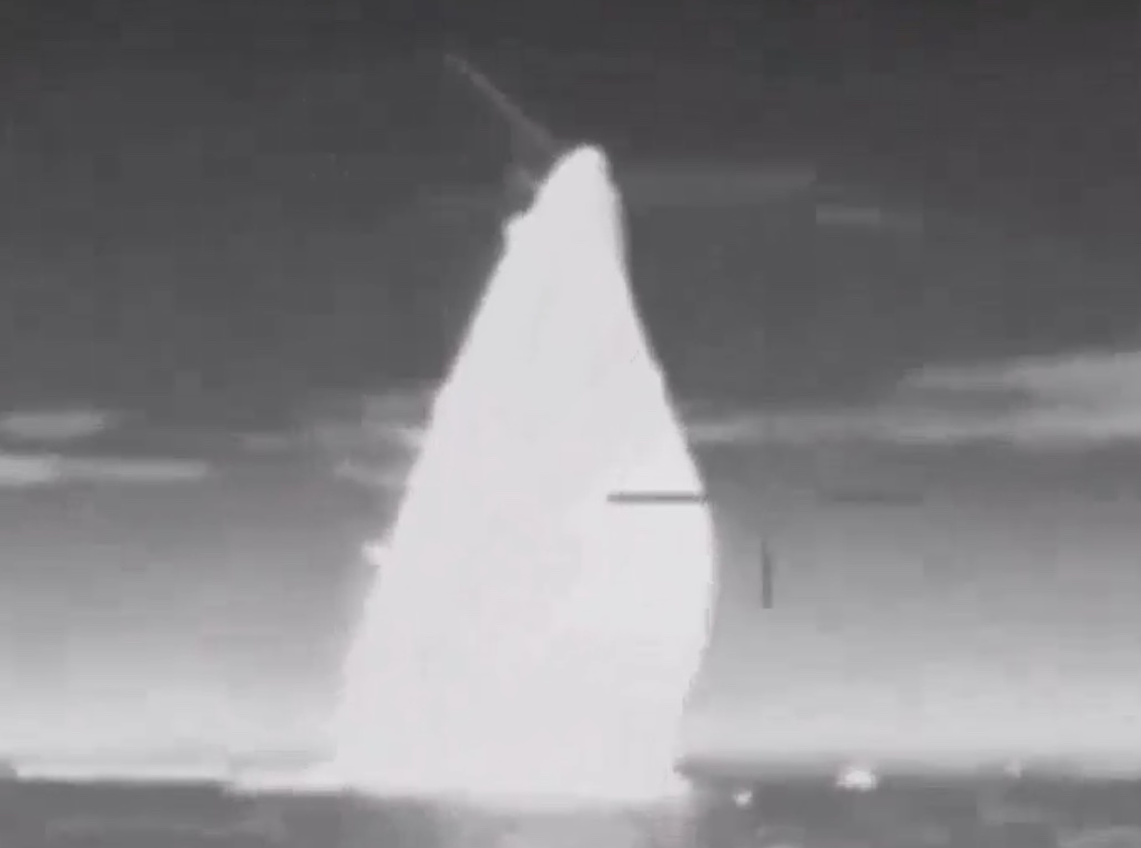 From our story at the time: “The ship reportedly fired P-270 Moskit supersonic anti-ship missiles, whose NATO reporting name is the SS-N-22 Sunburn. They have conventional and nuclear warhead capacity, are capable of flying at a speed three times the speed of sound and have a range of around 75 miles. The missiles were aimed at the corvette Ternopil, according to the Ukrainian OperativnoZSU Telegram channel. The Ternopil, once one of Ukraine’s most capable warships, was captured by Russia when it seized Crimea in 2014. The Russian MoD released video showing the missiles being launched, then the target vessel exploding. The target was destroyed, according to the Russian MoD.“