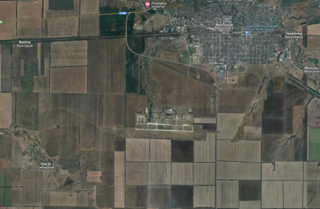Morosovsk Airfield is located about 150 miles from the front lines. Google Earth image