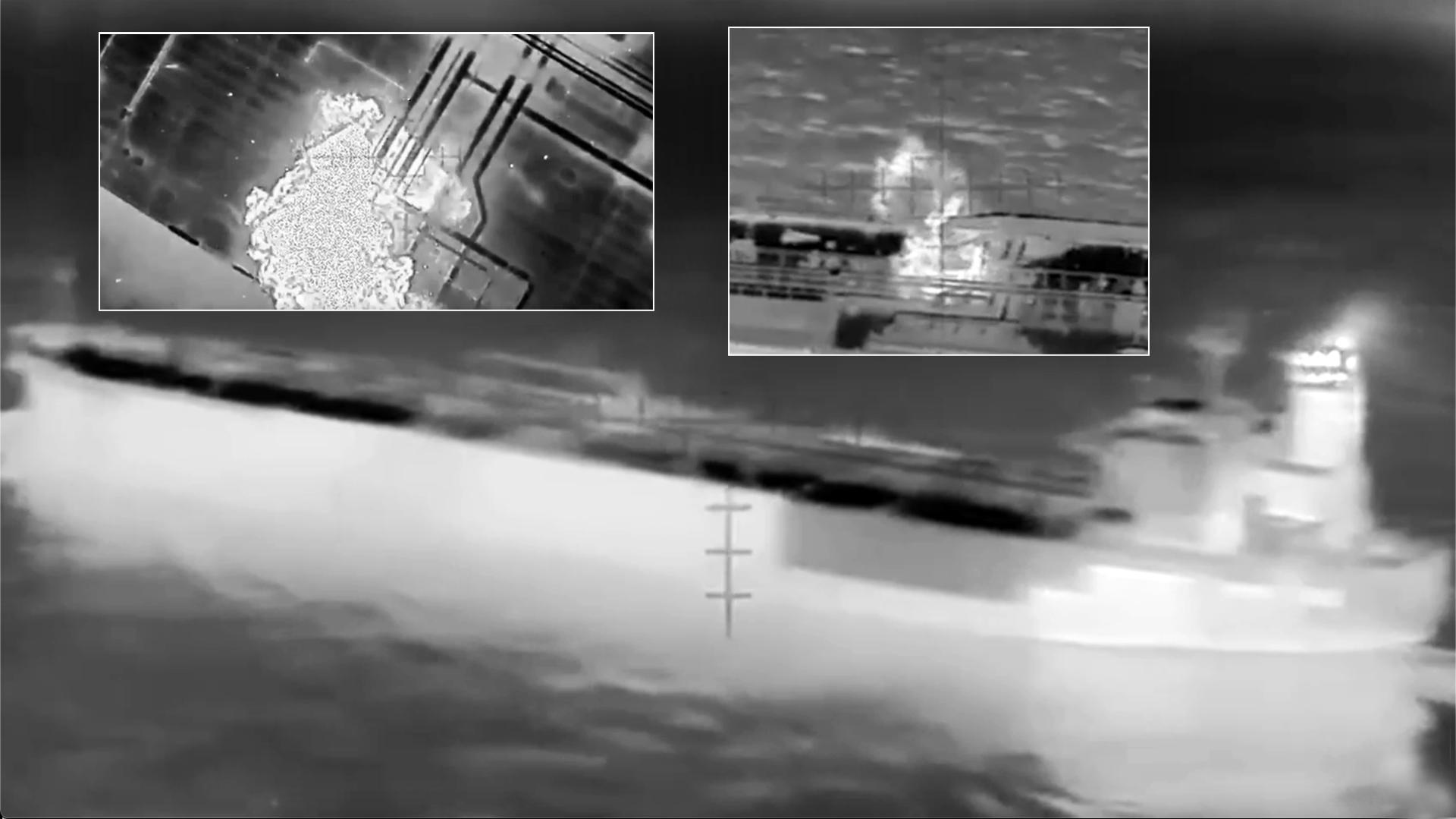 The SBU shared a video with us that purports to show the attack on the tanker. Here, munitions can be seen dropped onto the deck from a hexacopter-type aerial drone, indicating a short-range attack, with ‘bomber drones’ likely having been launched from a nearby vessel. The launch of these drones from a neighboring country would only be possible if the target was half a dozen or so miles off the coast.