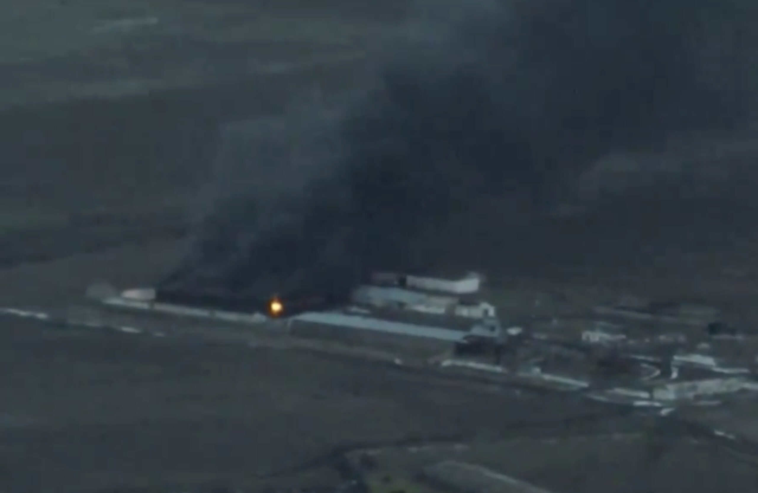 Towards the end of the video, at around the one-minute and 41-second mark, we see the impact of the strikes from a distance as the facility billows thick black smoke.