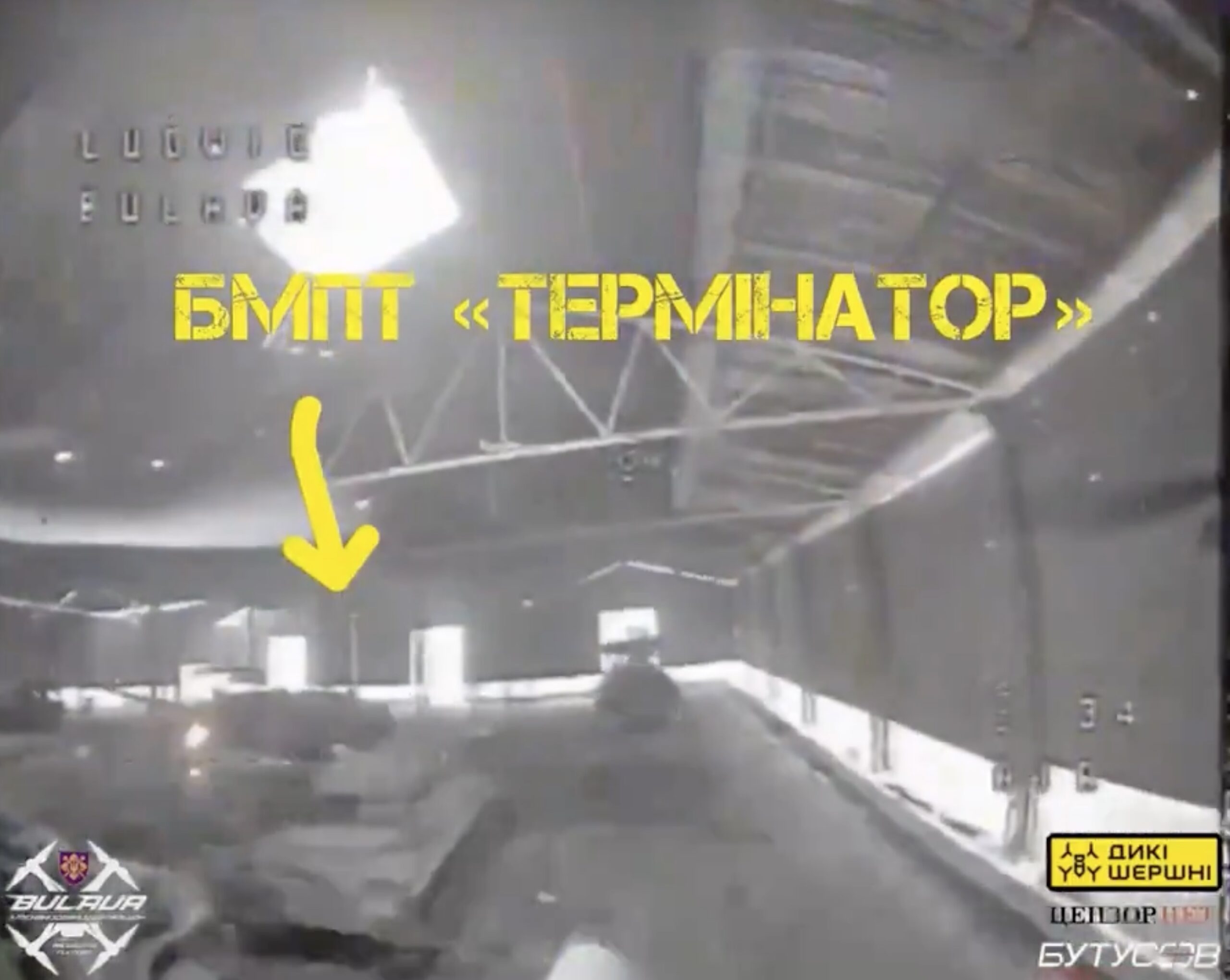The drone can then be seen hovering inside before smashing into a rare BMPT Terminator armored fighting vehicle. Derived from the T-72 tank chassis, the Terminator is designed to carry a crew of five, and has origins dating back to the mid-1990s. You can read more about the vehicle, including its weapons and capabilities, in these past War Zone features