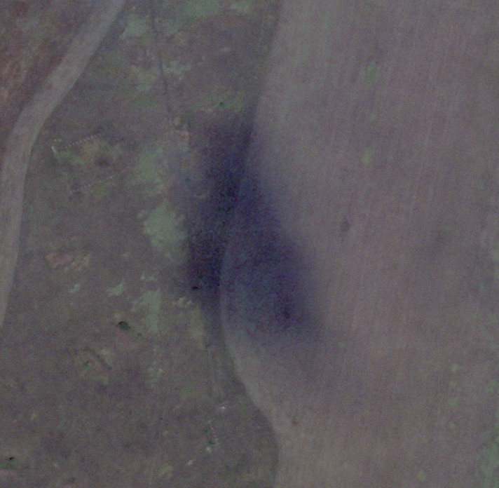What at first glance looks as it if might have been a patch of burned grass at the base actually appears to more likely just be a shadow cast by a cloud.