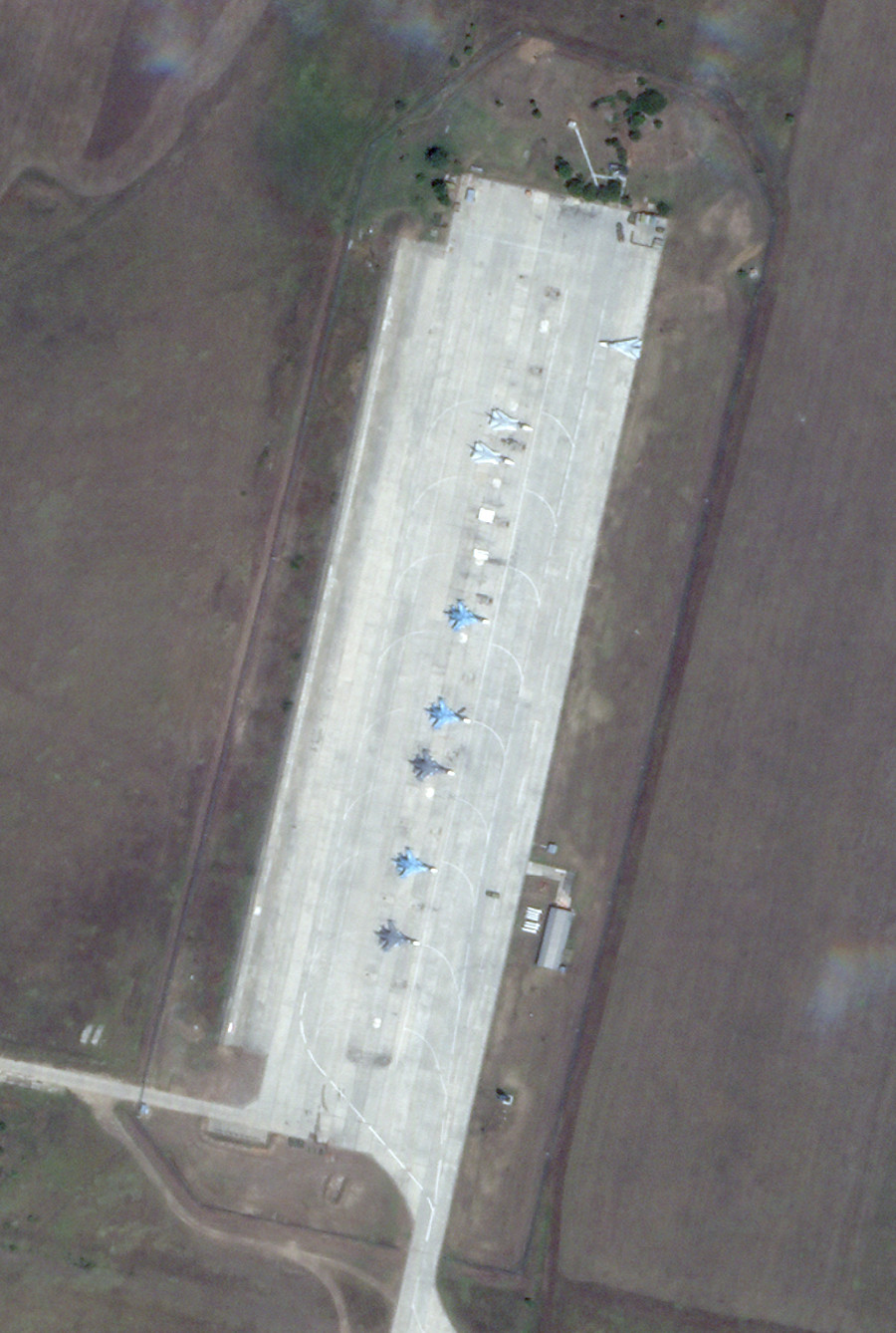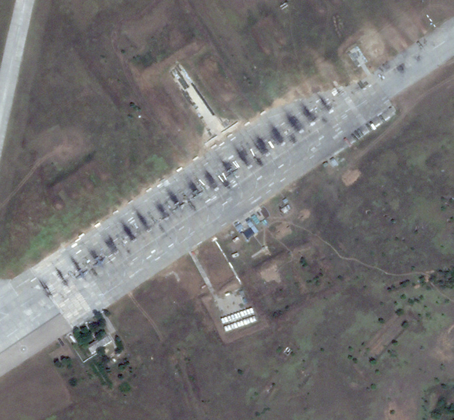 In addition, a number of what look to be Su-25SM aircraft can be seen parked in this area, but none of them have any obvious damage. There is no other abnormal activity can be seen, such as the presence of fire trucks or other first responders that were plainly visible in separate imagery of the aftermath of last week’s incident at Saki Air Base.