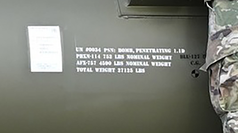 Arguably the most intriguing part of the images relates to the markings describing the unique cocktail of explosives that fill the MOP, which detail their respective weights. They reveal that the weapon pictured was filled with around 4,590 pounds of AFX-757 and about 752 pounds of PBXN-114 for a total of around 5,342 pounds of high-explosive filler. The markings also note the total nominal weight of the MOP as being 27,125 pounds.
