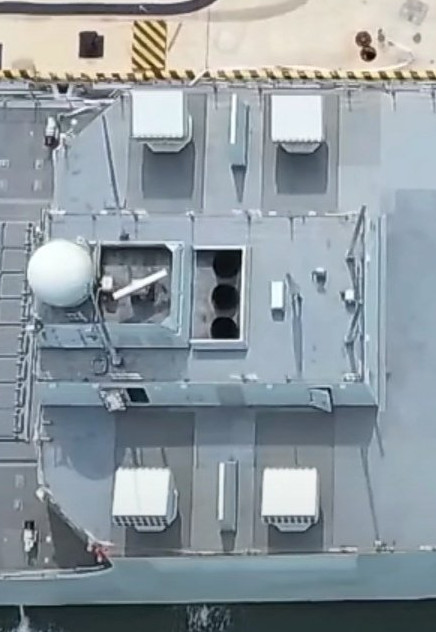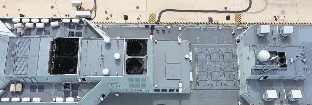 The overhead shots give a good look at Nanchang‘s 112 vertical launch system (VLS) cells. This is more VLS cells in total than a Flight III Arleigh Burke class destroyer (96 cells), though slightly fewer than the on a Ticonderoga class cruiser (122 cells). This is also more missile-launching capacity than is currently found on the U.S. Navy’s Zumwalt class stealth destroyers (80 cells), which are larger overall than China’s Type 055s.