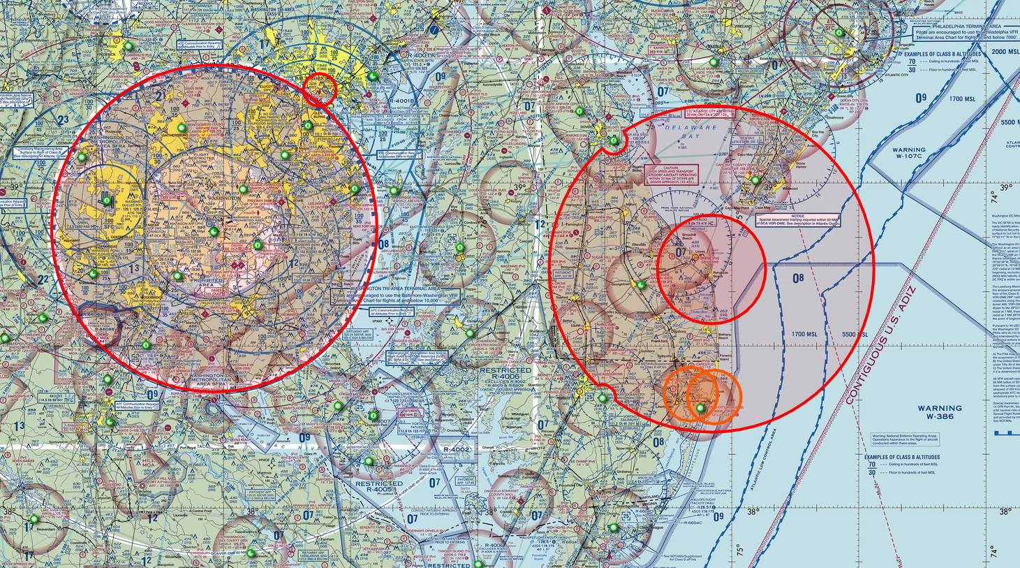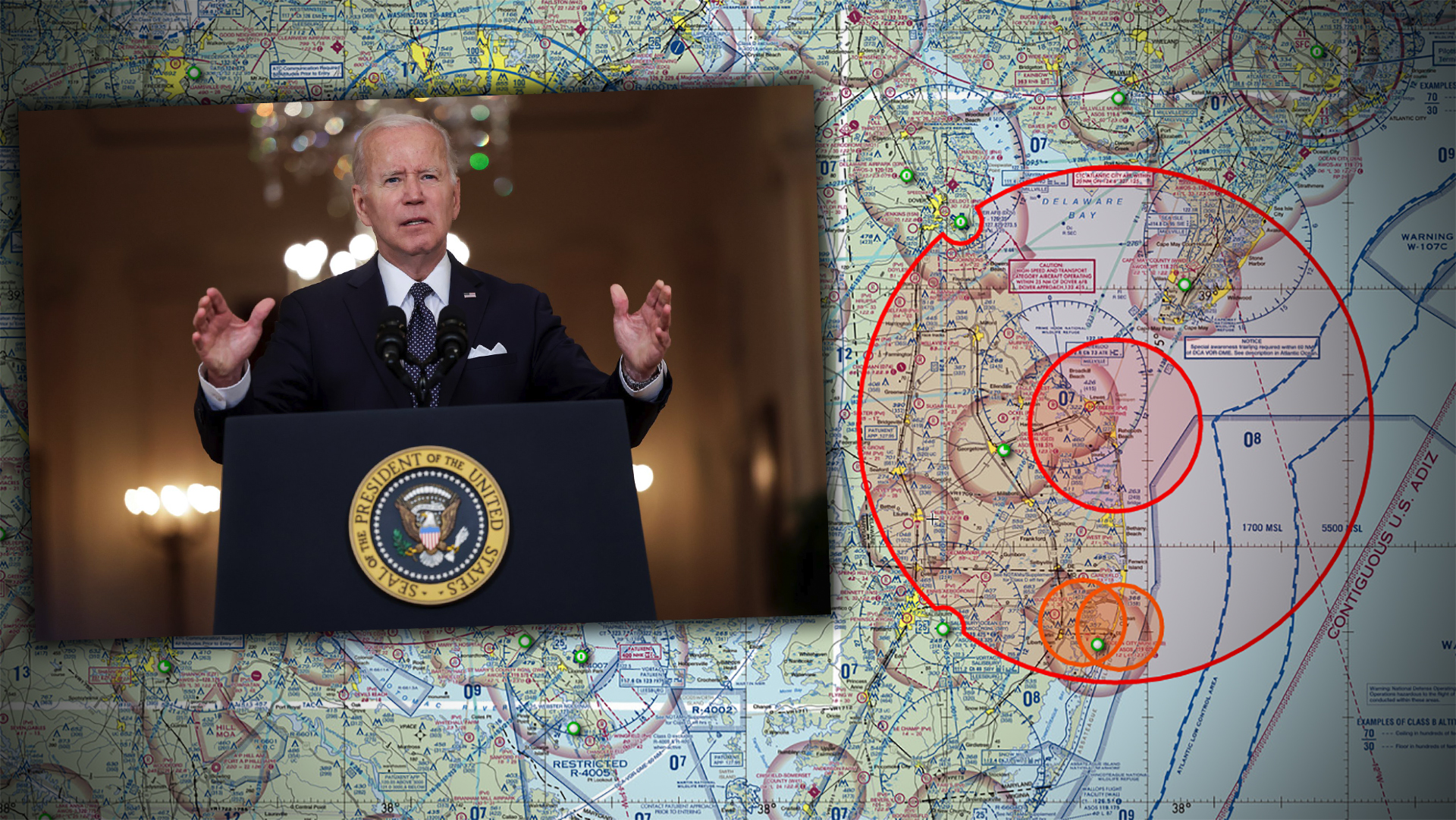 A check on SkyVector.com shows temporary flight restrictions (TFR) in the area near Rehoboth Beach at the mouth of Delaware Bay. The Federal Aviation Administration website has the pertinent TFR described in detail here.