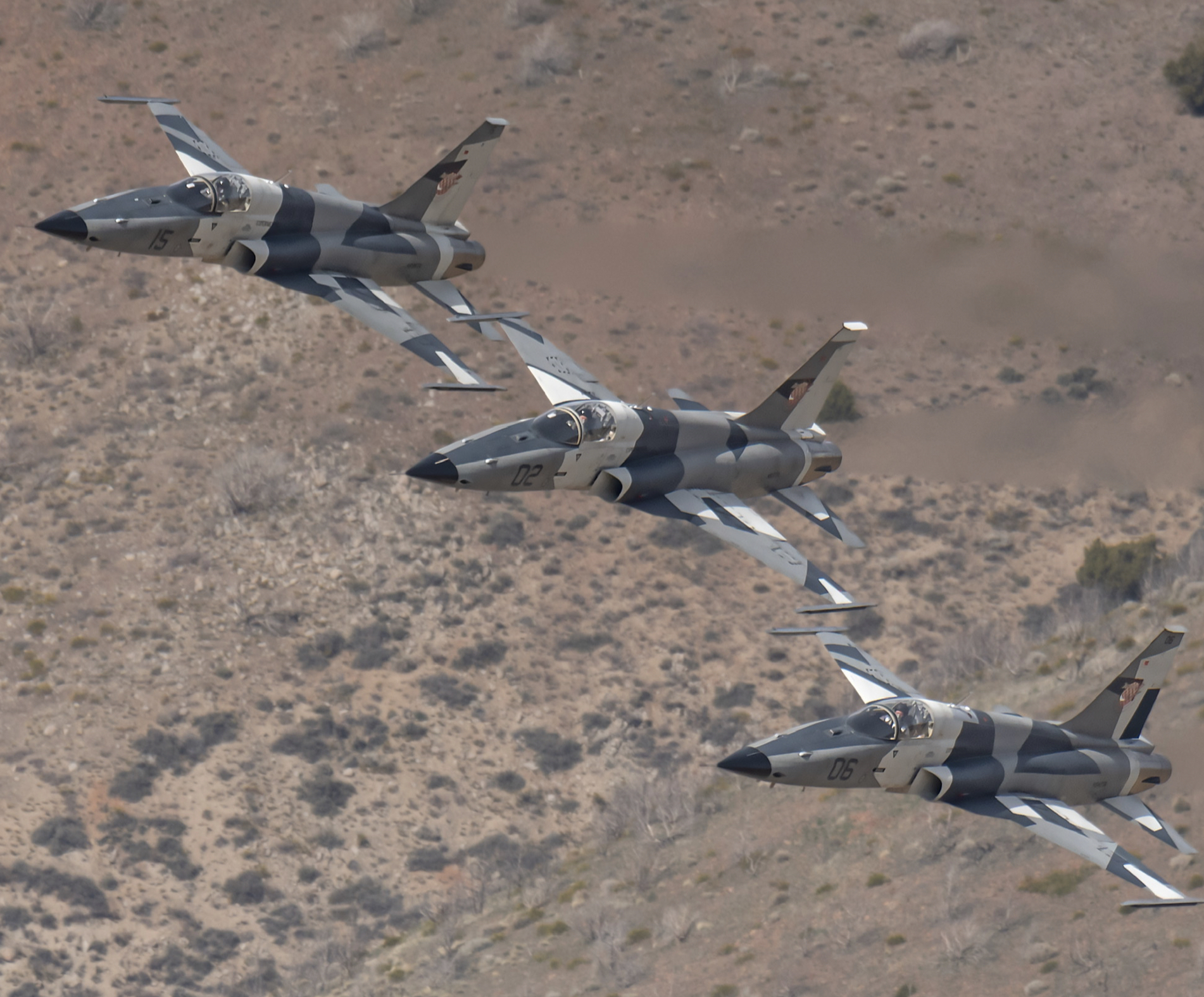 Tactical Air Support (TacAir) is a Reno, Nevada-based private ‘red air’ commercial adversary support contractor that has for years been working to further develop its advanced F-5E/F derivative, dubbed the F-5AT, to efficiently simulate modern enemy capabilities to better prepare U.S. and allied aircrews for future conflicts. Tactical Air Suport’s fleet is made up of 21 ex-Jordanian surplus F-5E/F airframes that have been heavily modified and refurbished by Northrop Grumman and equipped with tailored upgrades to create a “4th generation adversary platform with 3rd generation economy,” as described by TacAir.