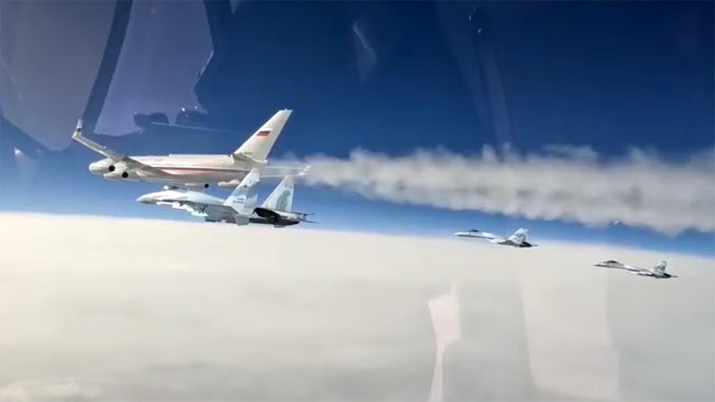 Russia has provided fighter escort for VVIP moving over tense areas before, and has even used its fighters to work as infrared decoys against potentially heat-seeking missile attacks for Putin’s arrival in Syria. But sending four fighters to a foreign country via multiple sovereign airspaces with Putin’s Il-96 is new.
