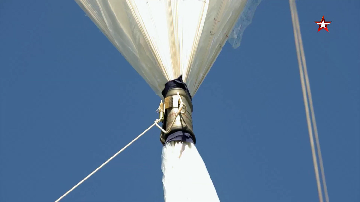 The larger balloon is the AN-V, for Vysotnyi, high-altitude, which can drift at an altitude of 98,000 feet or more. Later, the related AN-V1, AN-V1A, AN-V1B, and AN-VM versions were created. This last one of these is the largest military balloon currently used in Russia.