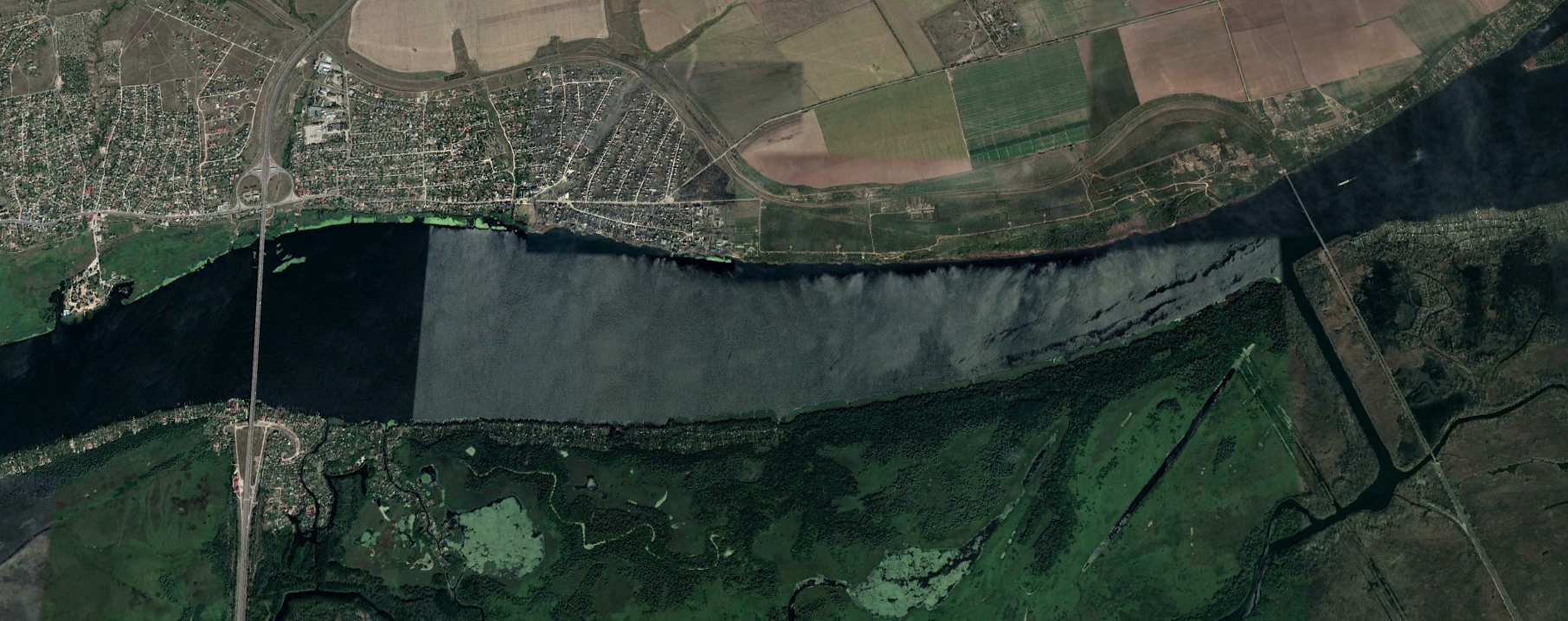 Days ago, synthetic aperture radar (SAR) data revealed what looked like a pontoon bridge being constructed alongside a rail bridge just up the river from Antonivskiy Bridge. But satellite imagery showed there was no pontoon bridge being constructed. Subsequent high-resolution satellite imagery obtained by The War Zone from Planet Labs now shows a large array of objects dispersed across the channel on the west side of the Antonivskiy Bridge. A smaller number of similar objects can be made out on the west side of the nearby rail bridge.