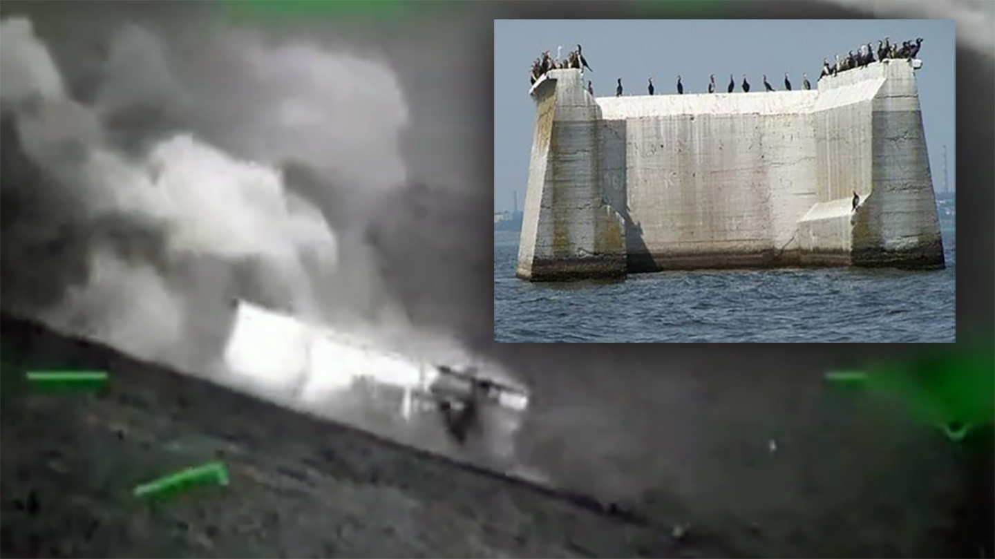 Whatever the helicopter’s missiles hit was not a barge, was occupied only by seabirds, and was, in actuality, a large concrete bridge support anchored to the riverbed since World War II. The mass of concrete is a relic of the Nazi occupation of Ukraine when the Germans built a span across the river and later blew it up.