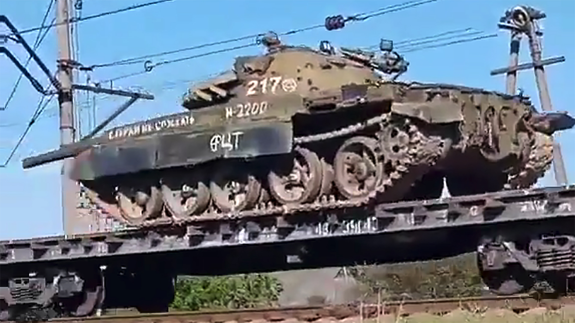 Numerous Cold-War era Russian T-62 tanks have been photographed at Melitopol railway station in southeastern Ukraine near the current front lines of the three-month-old conflict in the country. Whether the tanks will be used by Russian forces or turned over to local separatist groups is currently unclear, but their presence can only raise questions about Russia’s depleting armor reserves after months of significant losses.