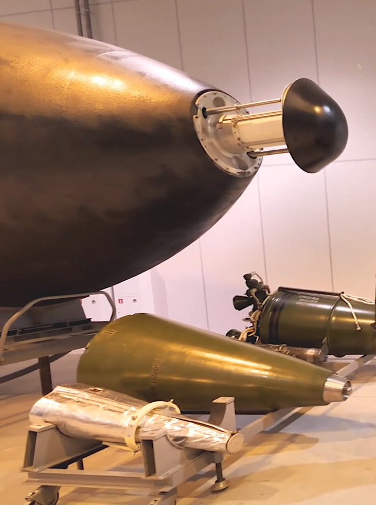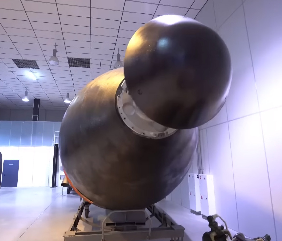 The images that Kornev shared online immediately underscore just how big the R-36M2 is by showing the size of the payload bus by itself. The bus can carry up to 14 warheads, in two rows of 7. There is disagreement about the approximate yield of these warheads, with many sources saying they are in the 550-750 kiloton range, while some others suggest they could be more powerful, between 750 kilotons and one megaton.