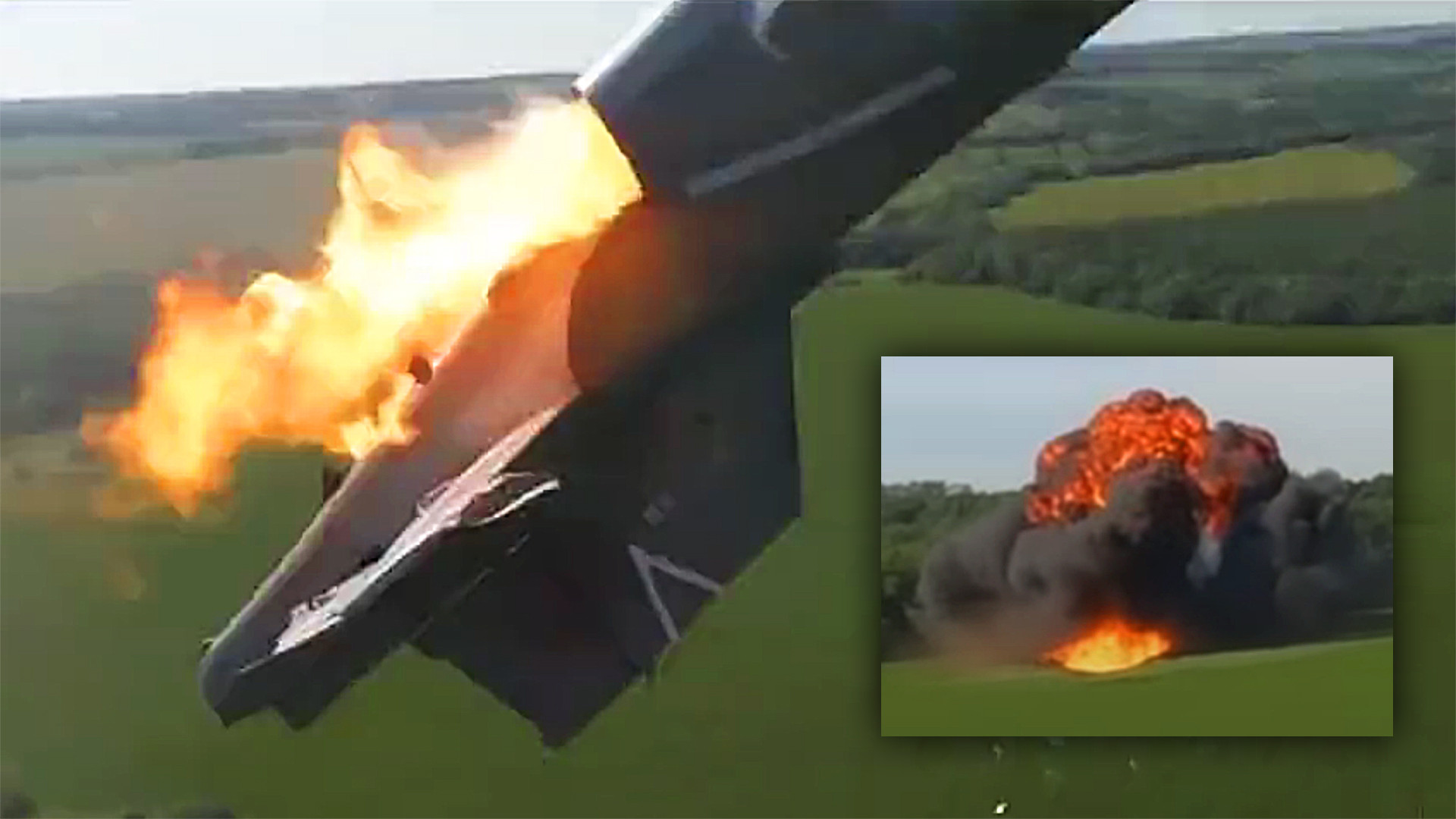 Before the pilot touches down under-parachute, the Su-25 is seen exploding in a field in the distance. Once on the ground, what was an incredibly violent instant in time transitions to an odd, almost peaceful calm under a beautiful blue sky. You can hear a jet somewhere nearby, likely his wingman which can be briefly seen in the video, and a billowing smoke column is visible in the distance where the Su-25 augered in. The entire clip looks like something out of a video game, but it’s not.