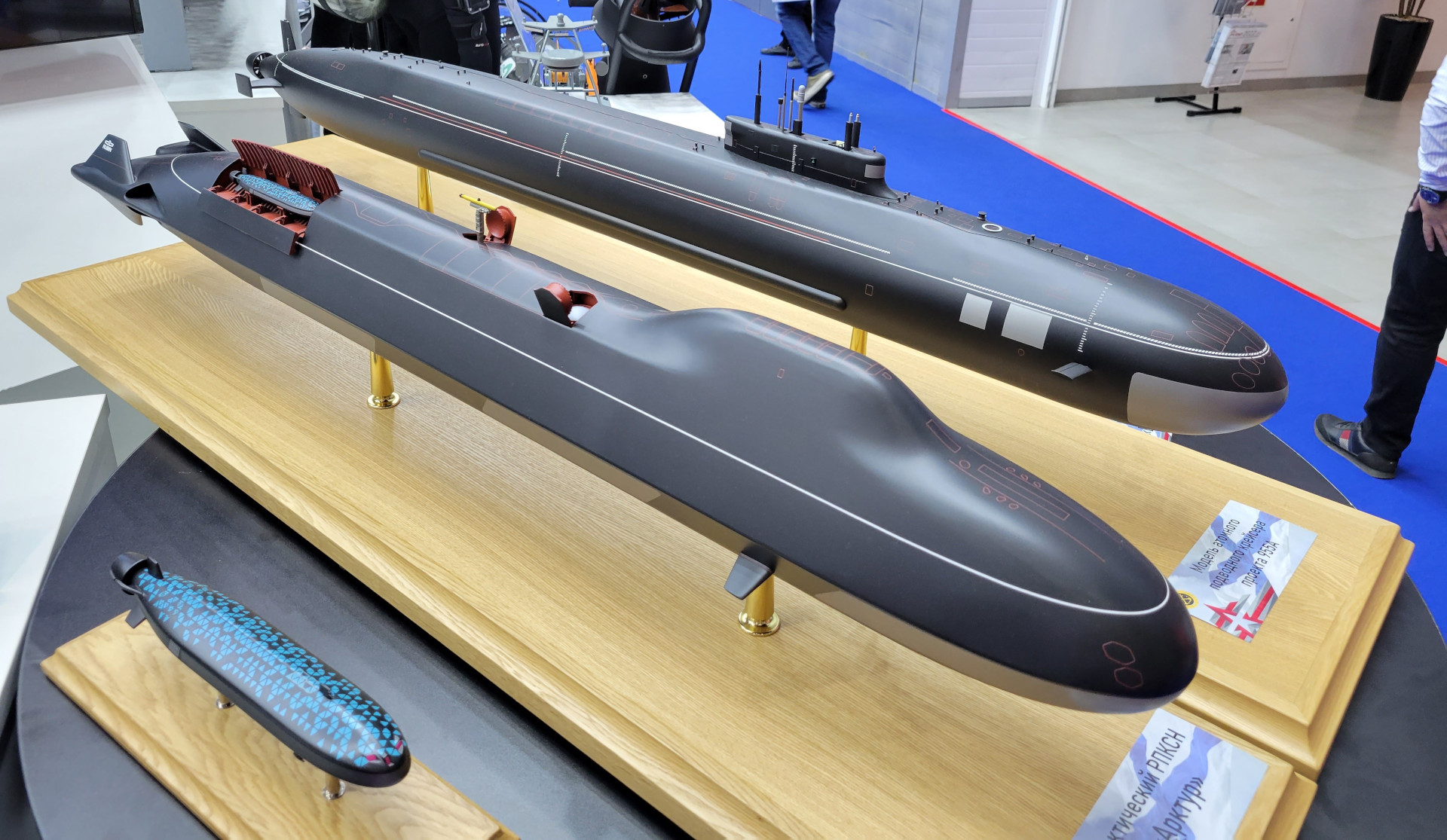 At the same time, it has been responsible for very advanced and niche work, including the Belgorod conversion, the Poseidon torpedo, the secretive Losharik deep-diving espionage-focused mini-sub, and the development of a host of specialized UUVs. On the same table as the Arktur and Surrogat-V models, as well as the one of the Borei-A, was another one of what appears to be a separate new mini-submarine design, called Ye-Amur.