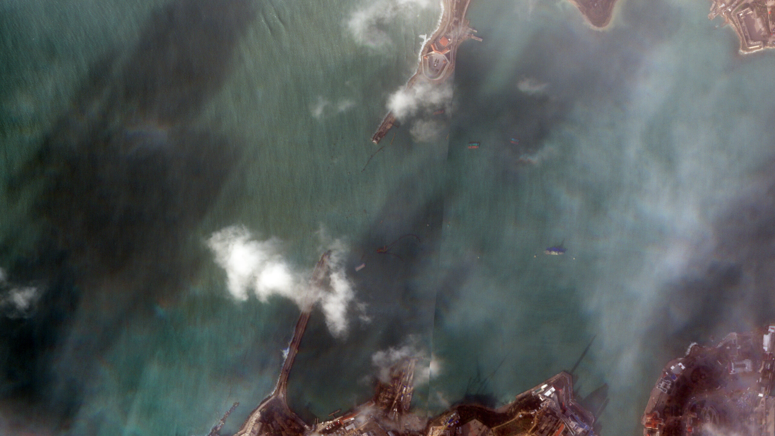 In addition to affecting the physical harbor barriers, the storm also appeared to have destroyed the pens holding militarily trained bottlenosed dolphins, according to naval expert H. I. Sutton (@CovertShores). It’s also possible that the pens were towed elsewhere prior to the storm, but they have not been located as of yet.