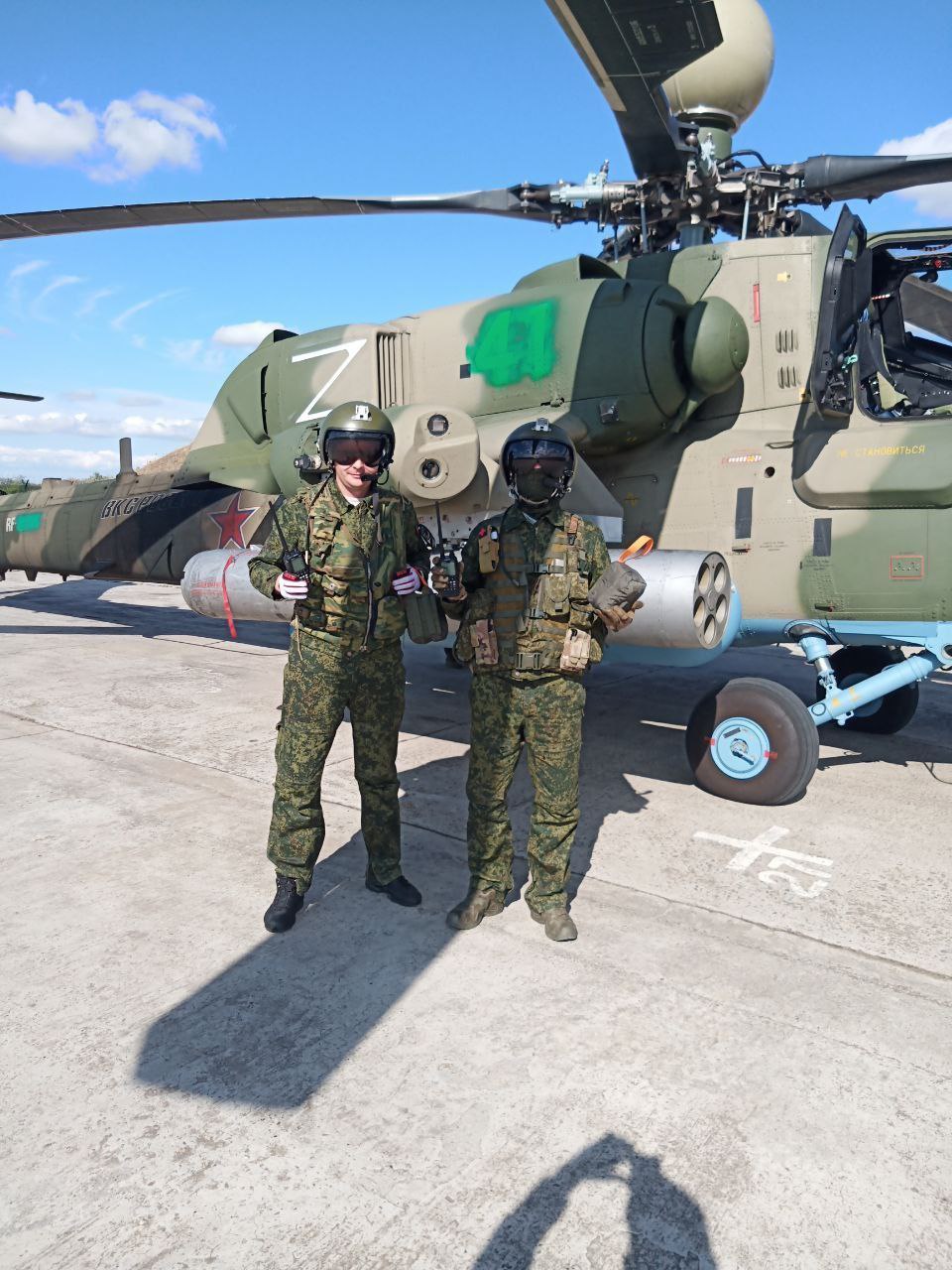 A large letter ‘Z’ was painted on the heat suppressor covering the engine nozzle, indicating that the helicopter belonged to the Western Military District (MD). Nothing is known about any operational unit that has already received Mi-28NM helicopters. Most likely, the Mi-28NMs operating in Ukraine are piloted by crews from the 344th State Combat Training and Flight Crew Conversion Center in Torzhok; this is also in the Western MD area. Later, several more photos and videos have shown Mi-28NMs in Ukraine.