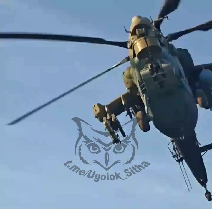The helicopter carries two LMUR missiles on a twin APU-L rail on the outer pylon under the right wing; the other pylon is empty. It’s not possible to see exactly what’s hanging under the left wing, except for an extra fuel tank. In another video, published a few days earlier by the Ugolok_Sitha channel, a Mi-28NM is seen carrying one LMUR missile under its right wing (on an APU-L twin rail), with a B8V-20 rocket launcher and an additional fuel tank under the left wing.