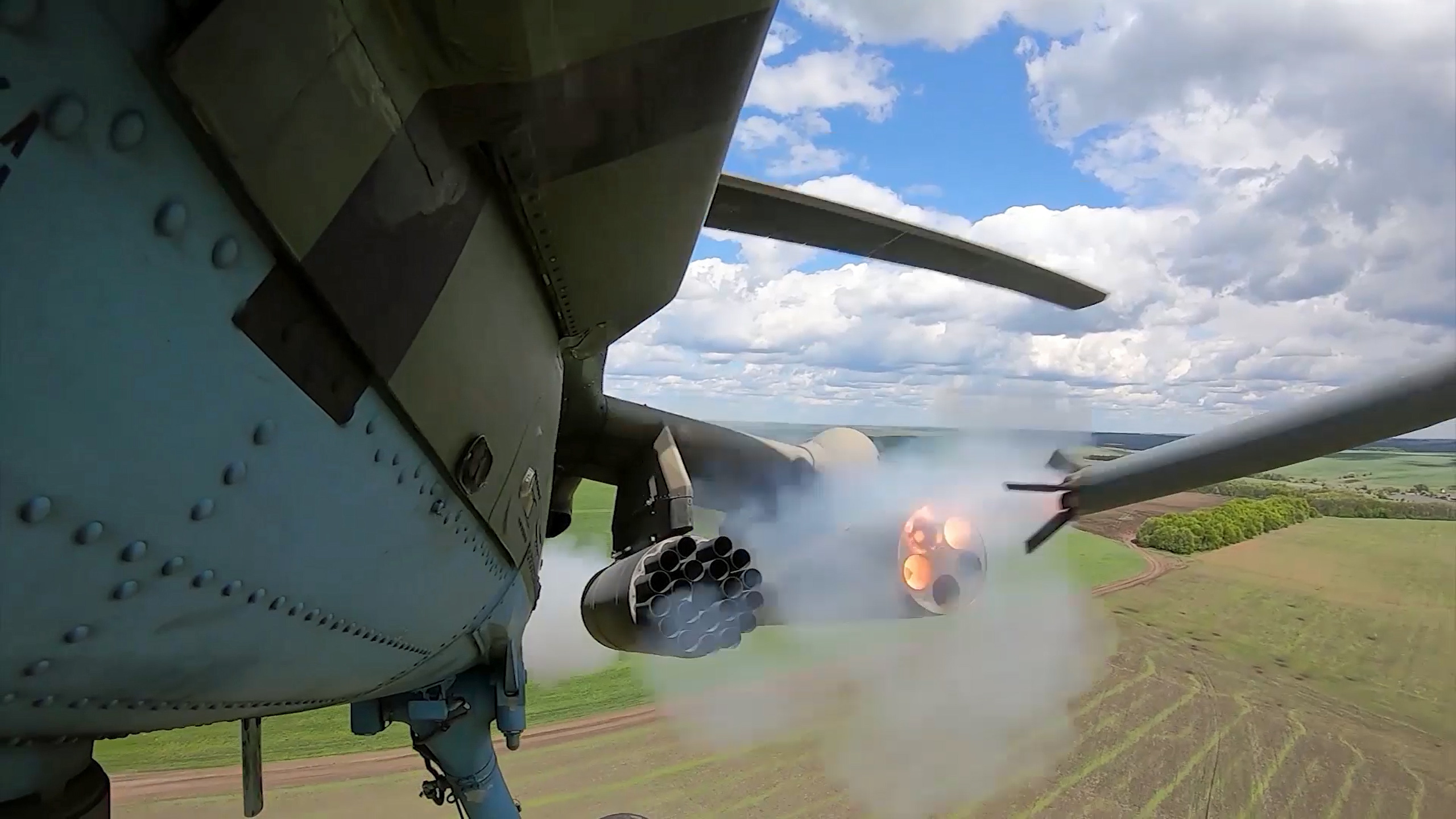 With man-portable air defense systems, or MANPADS, increasingly ubiquitous in the conflict, after a few weeks of fighting, Russian (and Ukrainian) helicopters began firing at ground targets by launching their unguided rockets in a climb. The helicopter approaches at a very low altitude, then pops up, fires a salvo of rockets, and quickly turns again at low altitude. As the rockets launch, the helicopter typically launches decoys in bursts. As The War Zone has discussed in the past, the accuracy of such fire is lower, but the safety of the helicopter is much improved. Virtually all attack helicopter operations in the war are conducted like this and Su-25 Frogfoot attack aircraft also operate in a similar way.