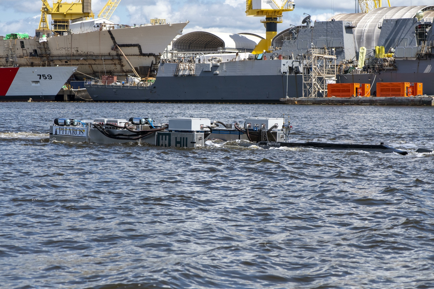 While the Pharos system demonstration wasn’t aimed at any specific DoD program, HII said the concept is geared to help the Pentagon operate in the unmanned naval domain.